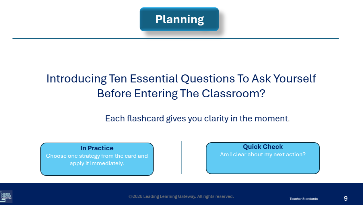 The 10 Essential Questions suite includes the core book, aligned CPD Facilitator’s Guide, Reflective Journal, and teacher-ready flashcards—designed for real coaching, real classrooms, and real impact.